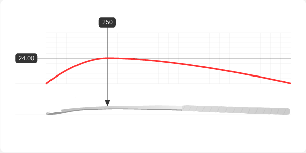 Ultralow bow: 25mm at 180mm for precision flicks and aerials Lightweight indoor construction (460g) 430mm balance point for quick handling Slim profile for tight control and sharp turns.