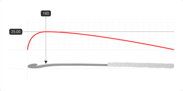 This stick delivers a responsive yet forgiving feel—ideal for the fast tempo of indoor play. Its 25mm ultralow curve, set at 180mm, is designed to support quick flicks and smooth control during close ball movement. A balanced build that enhances speed, execution, and accuracy in tight conditions.